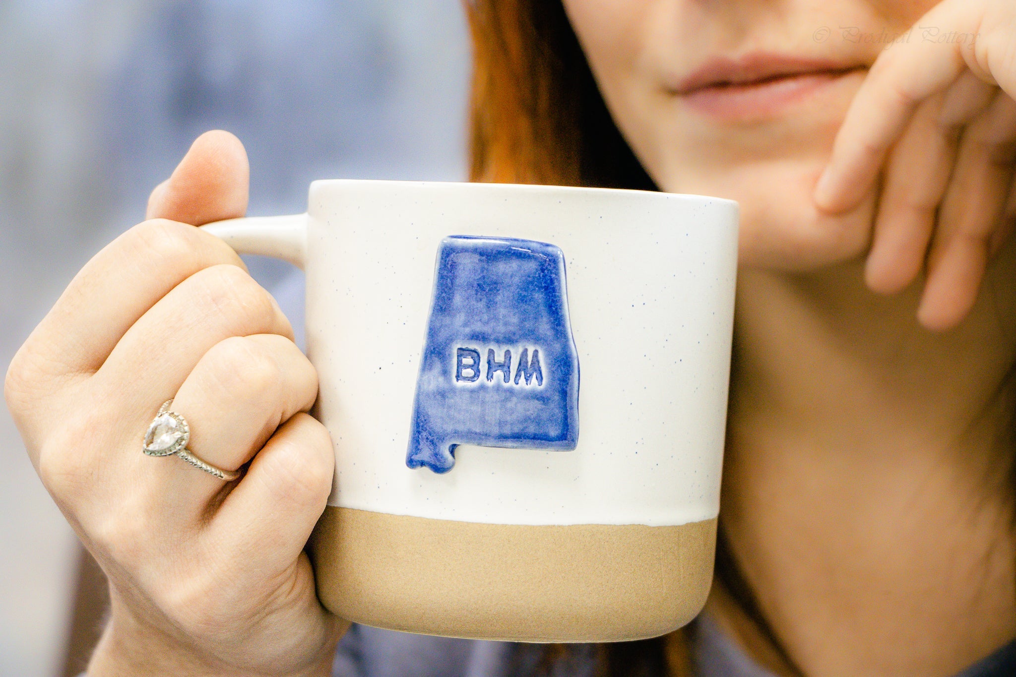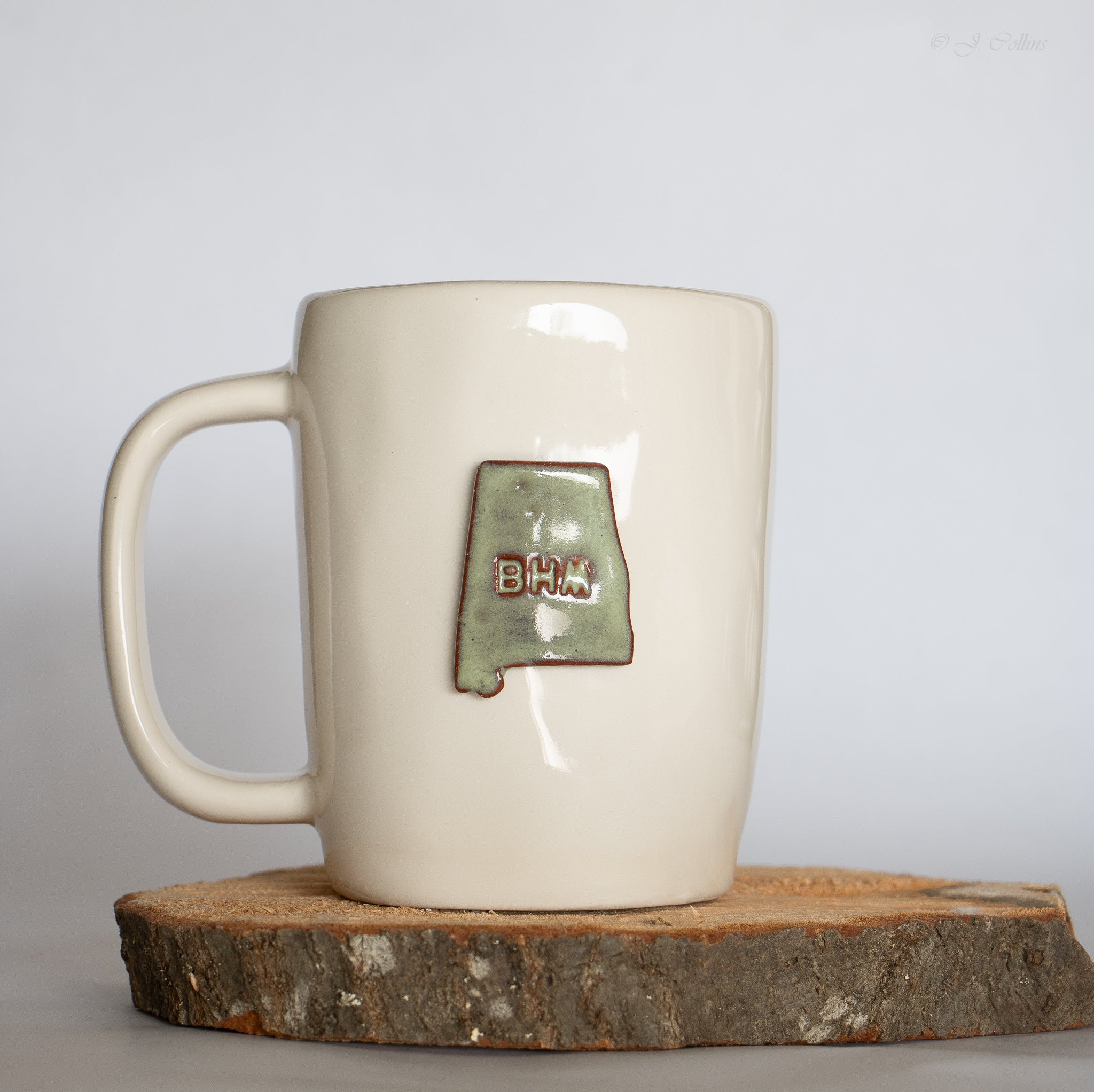 Brighten your day with one of these charming, hand-painted BHM States of Alabama coffee mugs. These mugs are decorated with unique, handcrafted state of AL adornments with BHM custom stamping. A great way to show off your Birmingham pride, as well as a perfect gift to give to those that love the Magic City.
