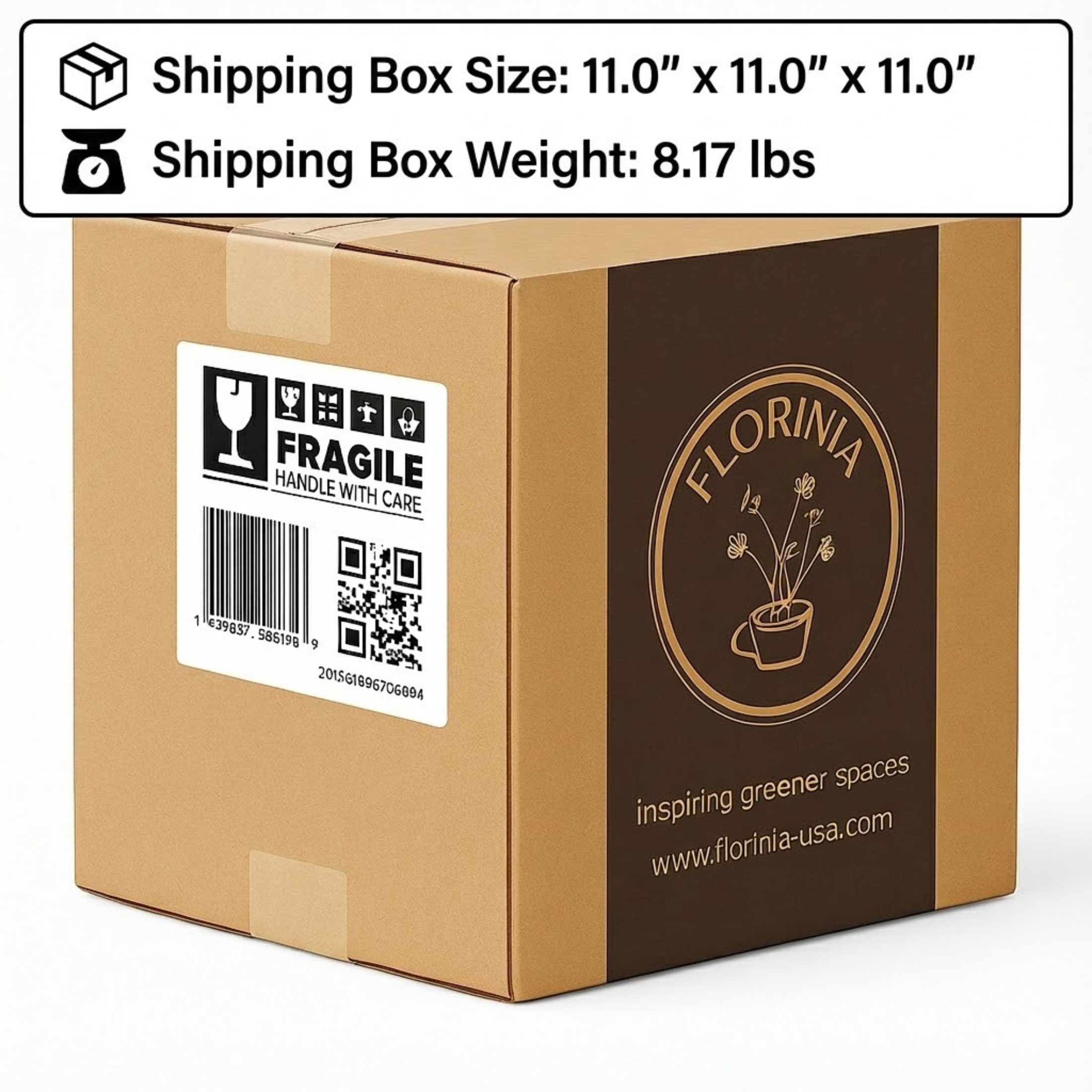 - Shipping box: 9.8" × 9.8" × 9.4", 8.16 lbs total.