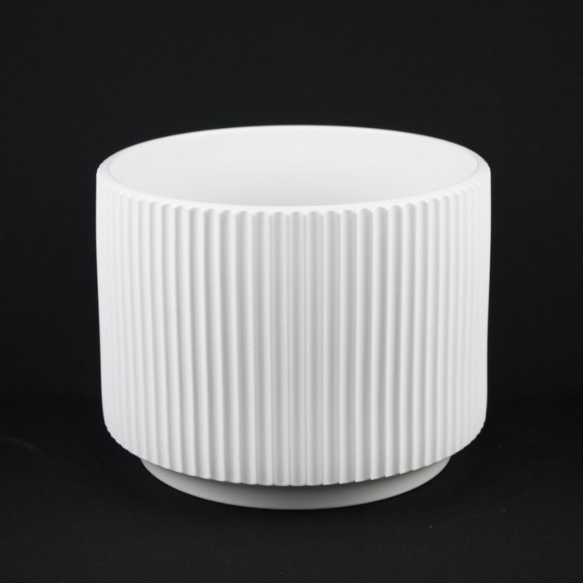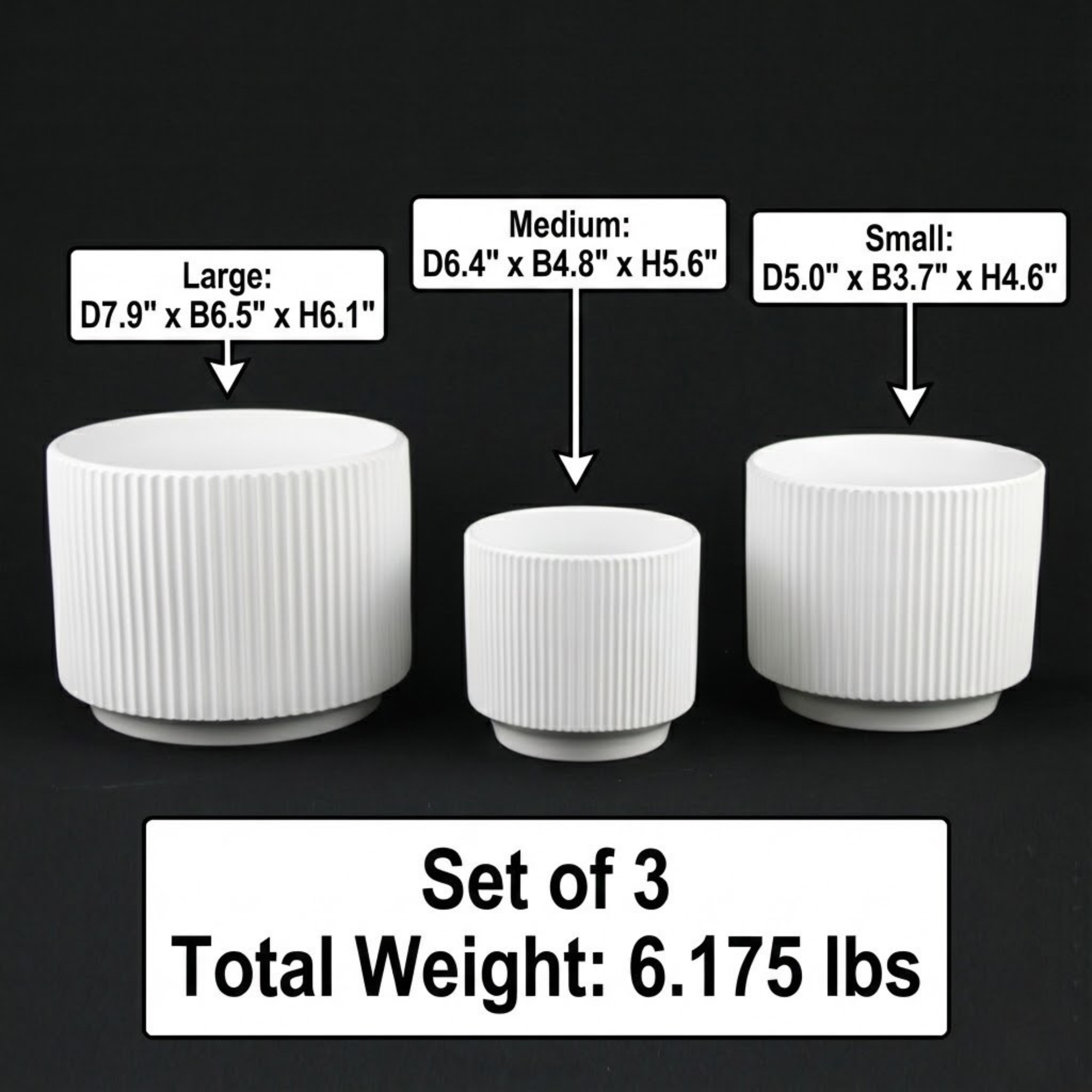 3-Piece White Stoneware Planter Pot Set with Ribbed Texture