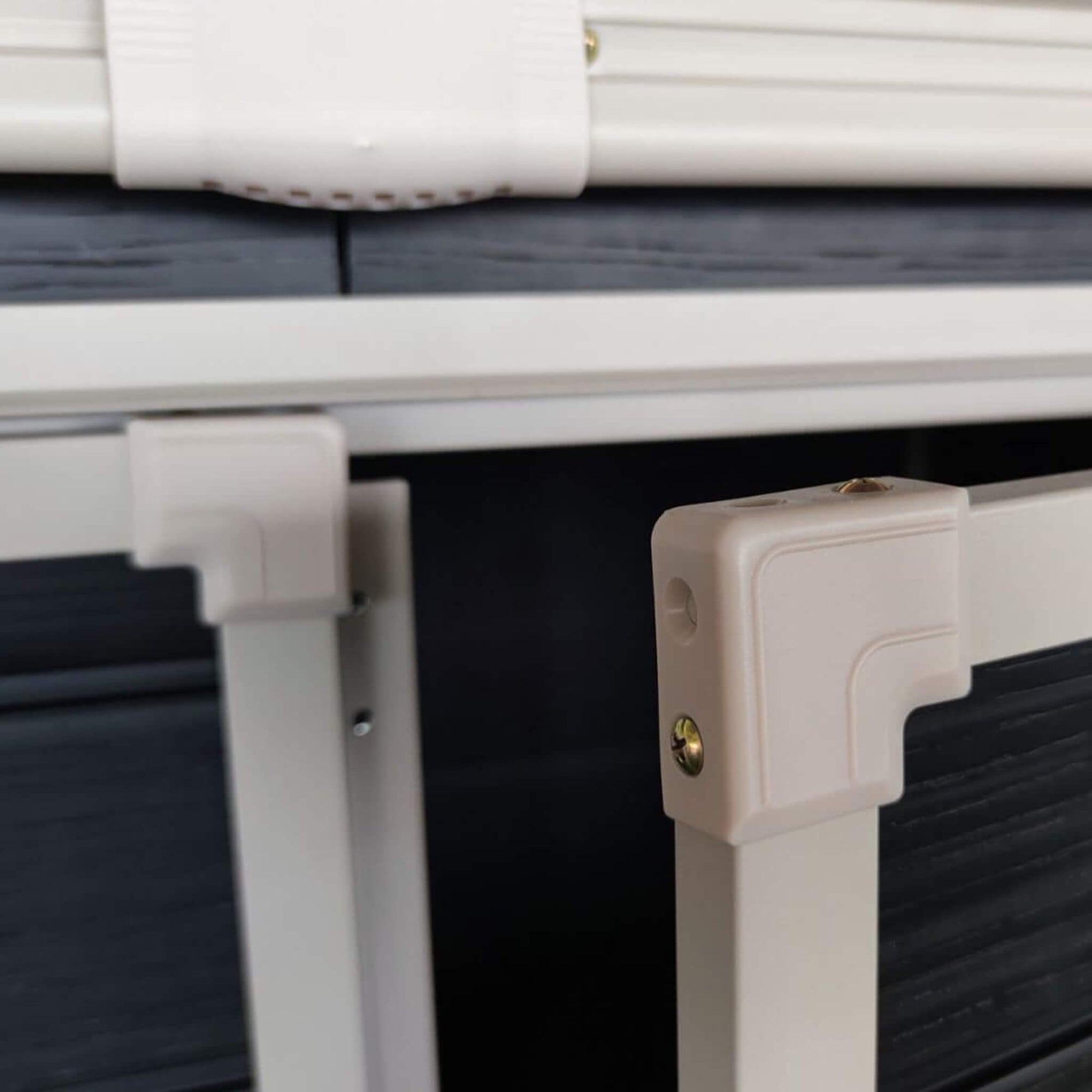 - The shed is built from high-quality, 14mm-thick polypropylene double-layer resin plastic that is waterproof, rust-proof, and recyclable, ensuring years of low-maintenance use.