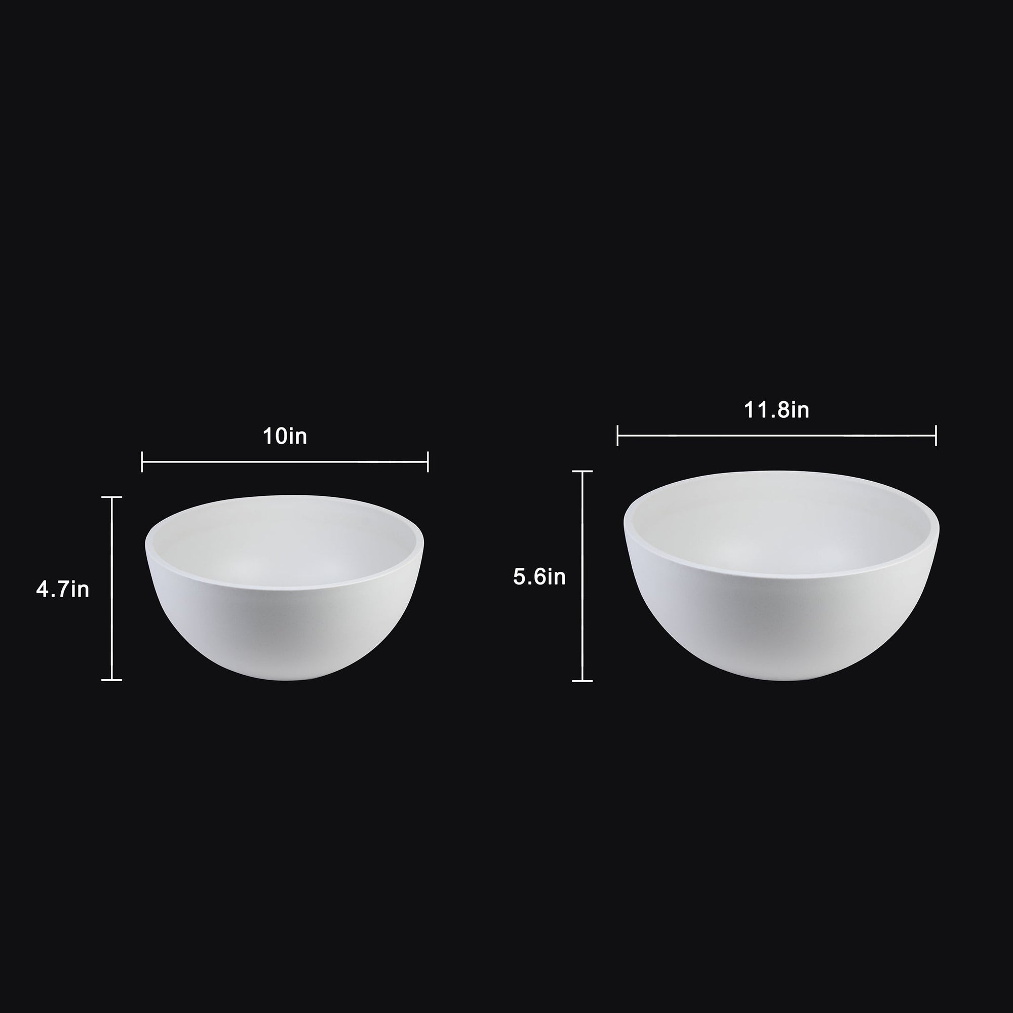 - Large Bowl: 12" D × 5.7" H (30 × 14.4 cm)